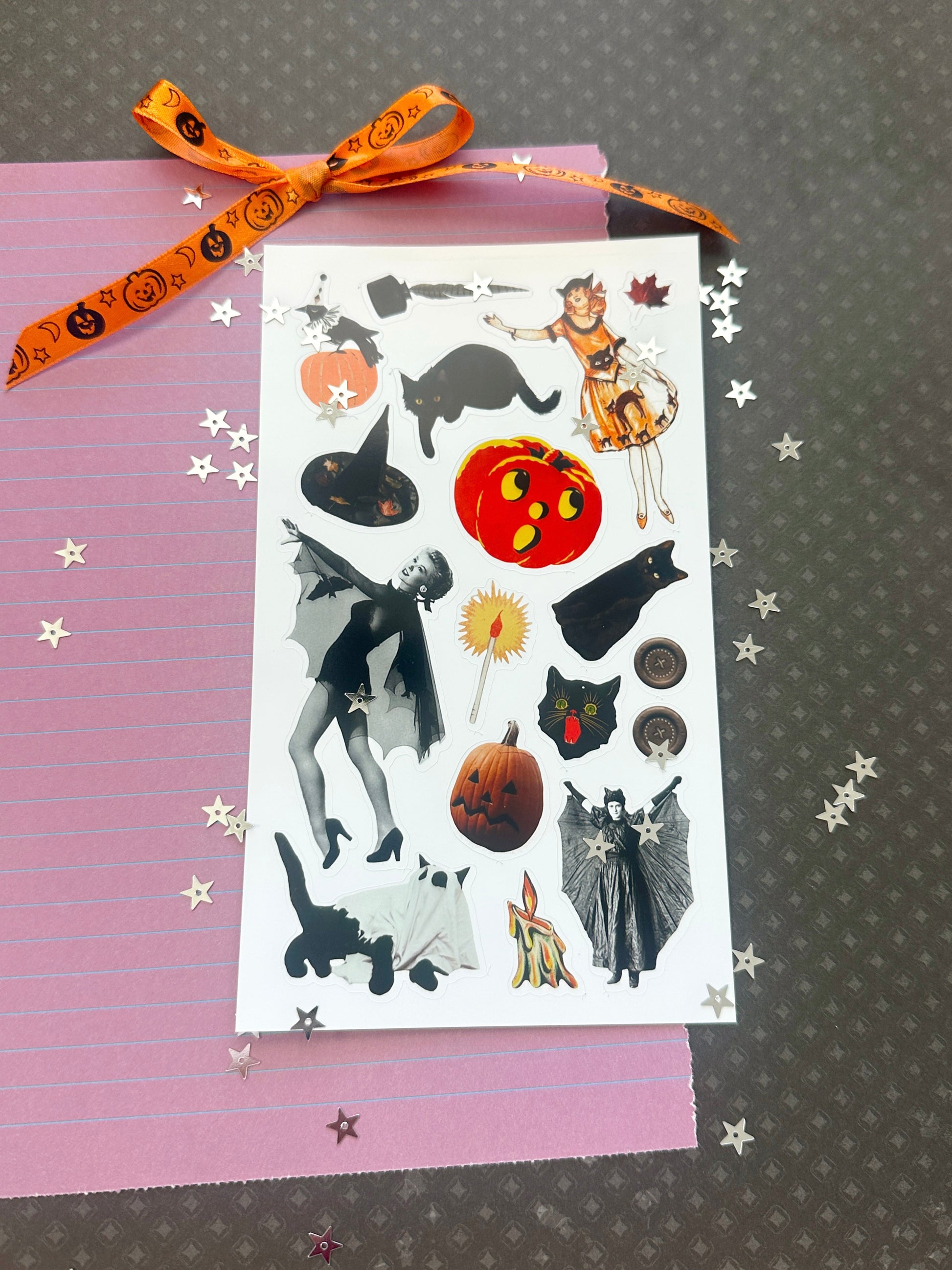 Add a dash of spooky charm to your junk journal with the Midnight Mischief Sticker Sheet — a collection of vintage-inspired witches, curious black cats, & cutie pumpkins. These are perfect for layering, collaging, & capturing the cozy mischief of Halloween nights!